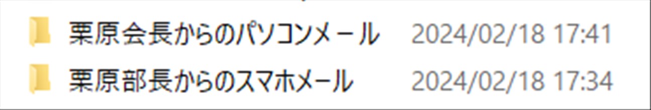| 栗原部長・大和田部長のお墓参り(令和4年7月7日) | 栗原会長からのメール(フォルダー名)![]() |