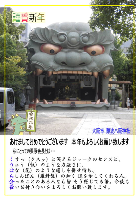 くすっ(クスツ)と笑えるジョ−クが最高に楽しい人で、 ━━━━━━━━━━━━━━━━━━━━━━ くち(口)に出して言うのは恥ずかしいけど・・・ りゅう(龍)のような力強さがあり、でも はな(花)のような癒しもあり、気が付けば らしんばん(羅針盤)のような求心力で引き寄せられてる。 会ったことのある人は皆 そう思います。今後も 長いお付き合いをよろしくお願い致します。 |